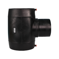 An electrofusion reducing tee is a plastic pipe fitting (typically polyethylene/PE) used to create a branch connection where the branch pipe is a smaller size than the main line. It has three openings: two ends of the same diameter (for the main pipe run) and one perpendicular outlet of a smaller diameter (for the branch). Embedded heating wires melt the plastic when powered, fusing the fitting securely to pipes of two different sizes and creating a strong, sealed joint.